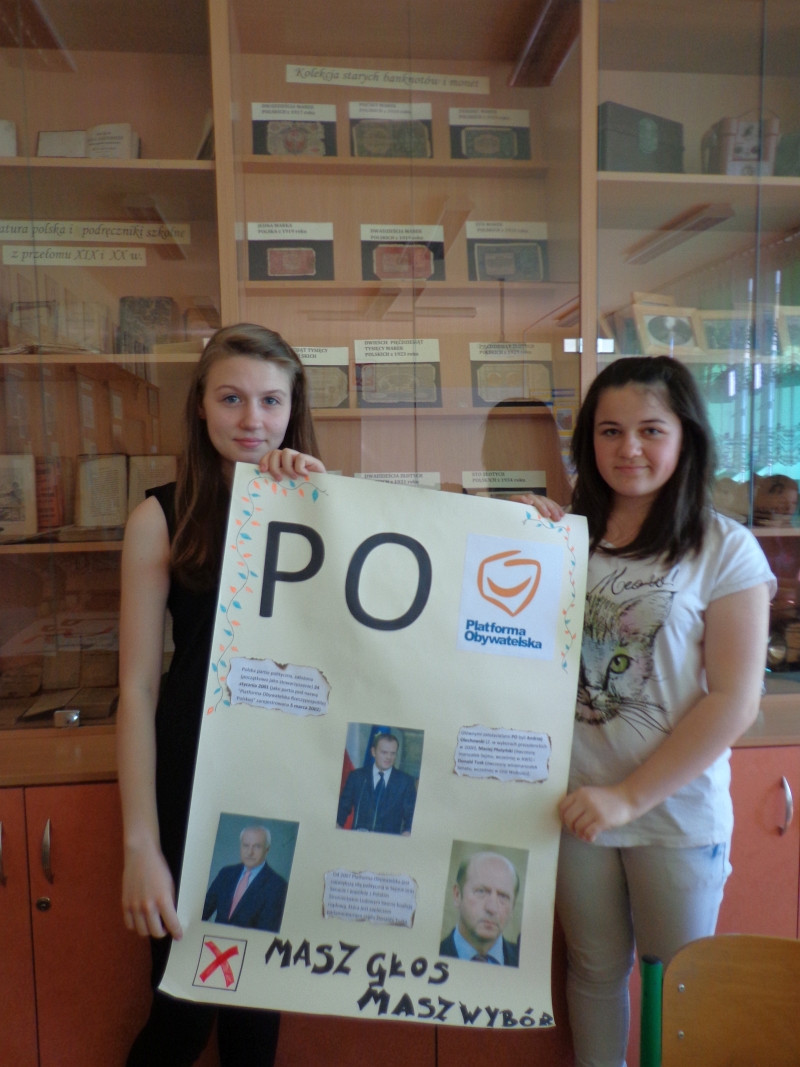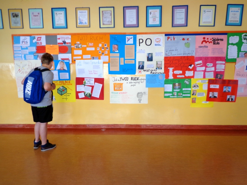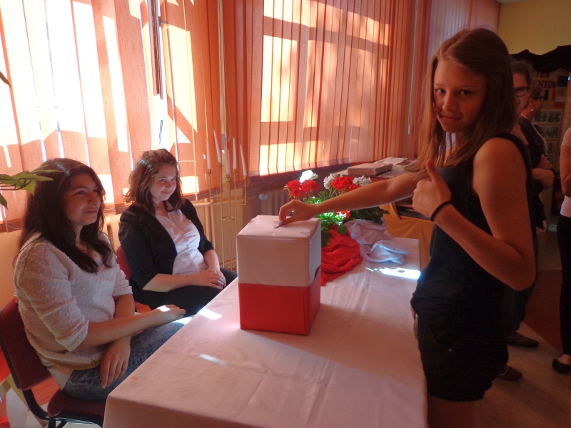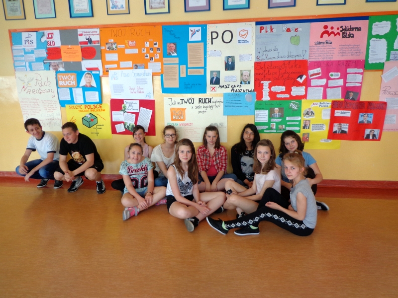 W piątek 23 maja w naszym gimnazjum odbyły się prawybory do Parlamentu Europejskiego. Uczniowie klas II i III głosowali na partie polityczne. Prawybory poprzedziła kampania wyborcza. Gimnazjaliści na lekcjach wiedzy o społeczeństwie przygotowywali plakaty wyborcze, które promowały poszczególne partie. Organizatorami prawyborów była grupa realizująca projekt Na spacer z Europą wraz z opiekunami p. Pauliną Marciniak i p. Elżbieta Zimną. Faworytami wśród gimnazjalistów okazały się partie : Europa Plus Twój Ruch, Prawo i Sprawiedliwość, Nowa Prawica oraz Ruch Narodowy.