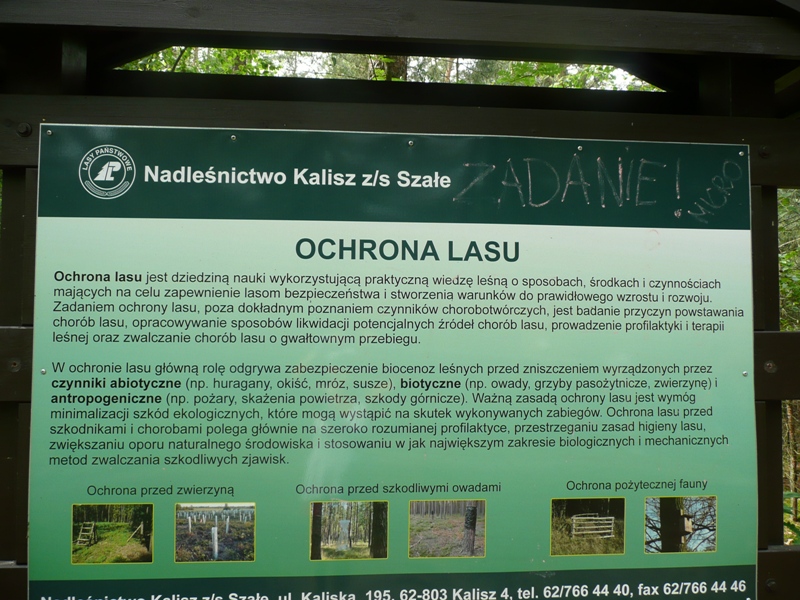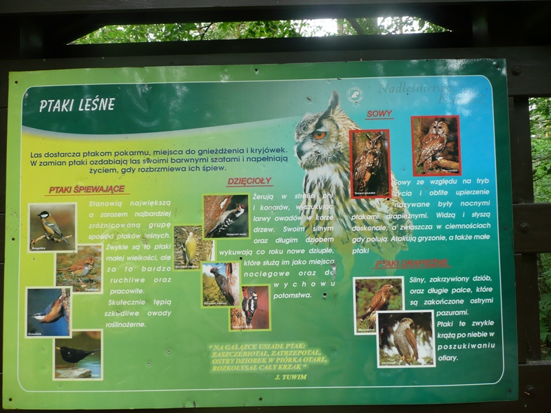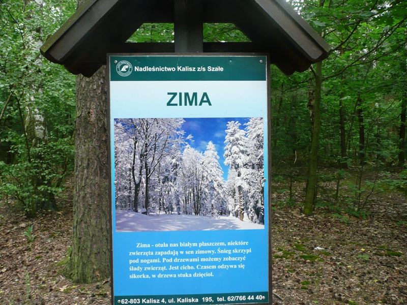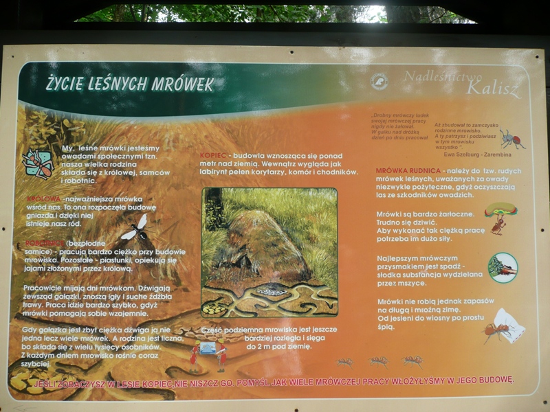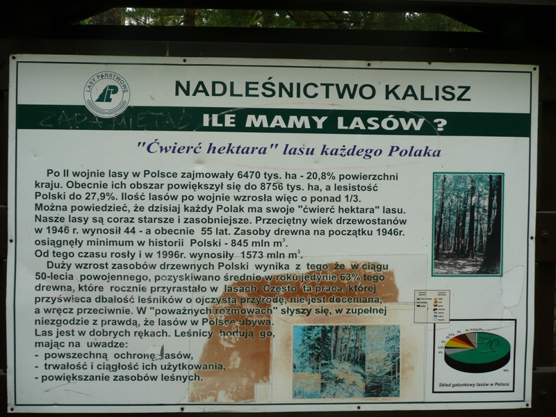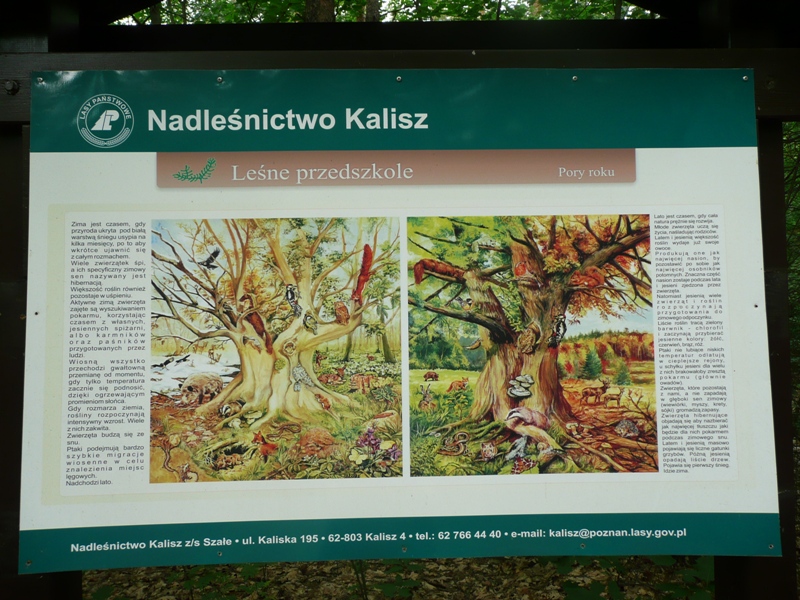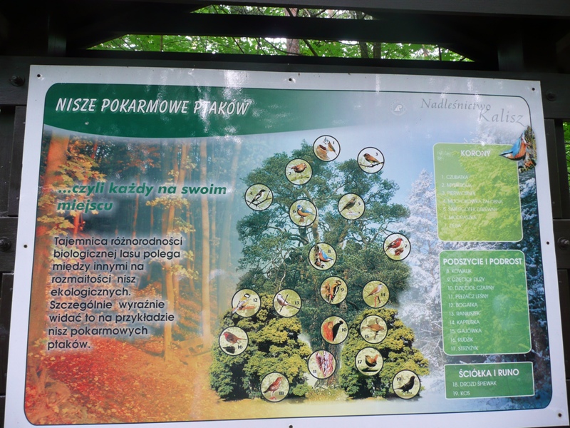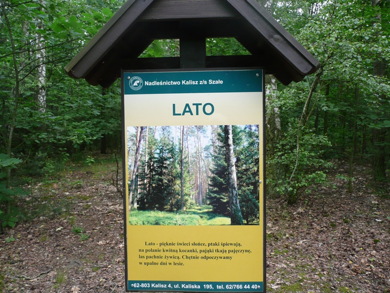 Jechaliśmy drogą nad Prosną skąpaną w promieniach czerwcowego słońca. Po drodze minęliśmy Aquapark, pole golfowe „Jantar”, Kaliskie Towarzystwo Kolarskie i w końcu ul. Wypoczynkową dotarliśmy na miejsce. Celem wyprawy było poznanie ścieżki przyrodniczo – leśnej „Winiary”, która ma długość ok. 3 km. Na jej trasie znajdują się 34 tablice, które przybliżają naukę o lesie, pokazują budowę i funkcjonowanie ekosystemów leśnych, a także tego, co im zagraża i je chroni. Ponadto informują, jaka jest rola leśników w gospodarowaniu zasobami przyrody. Dzięki tablicom wizualnym można się nauczyć rozpoznawać gatunki drzew iglastych, liściastych, zobaczyć – jak rośnie drzewo, policzyć ile ma lat. Można również nauczyć się rozpoznawać ptaki występujące w lesie. Ciekawa okazała się tablica „Ptasi budzik” pokazująca godziny aktywności ptaków śpiewających.
