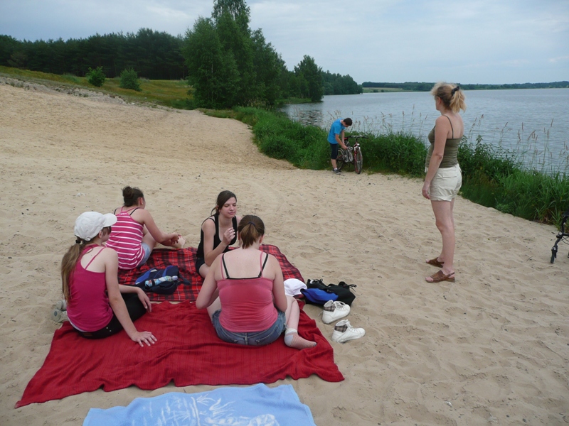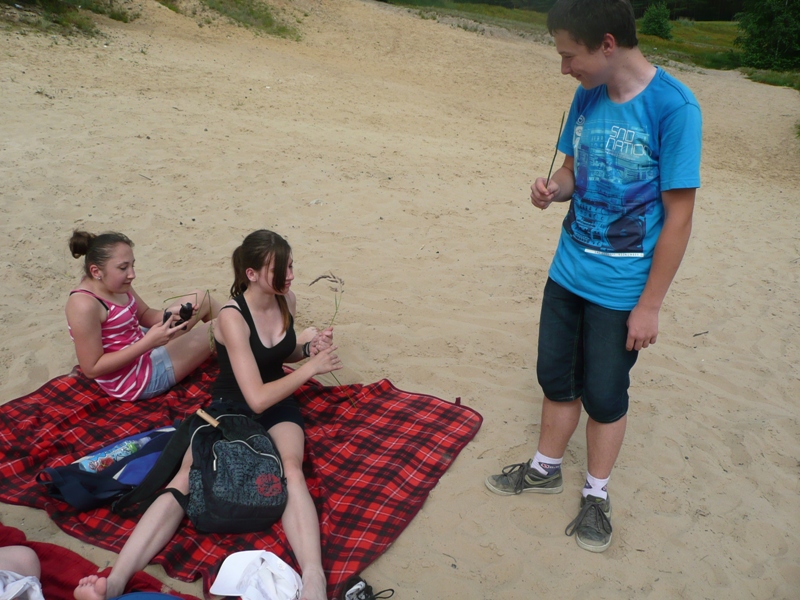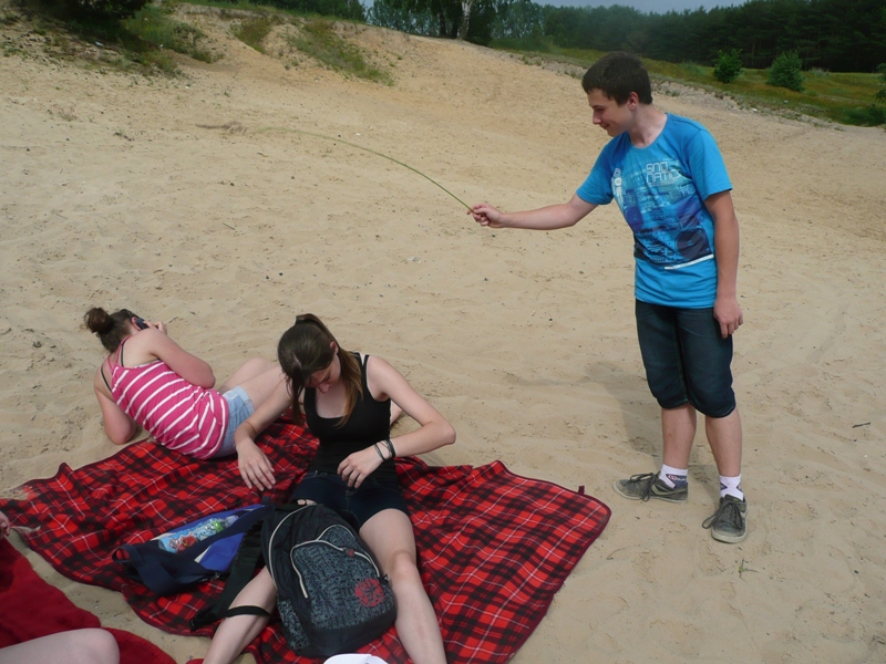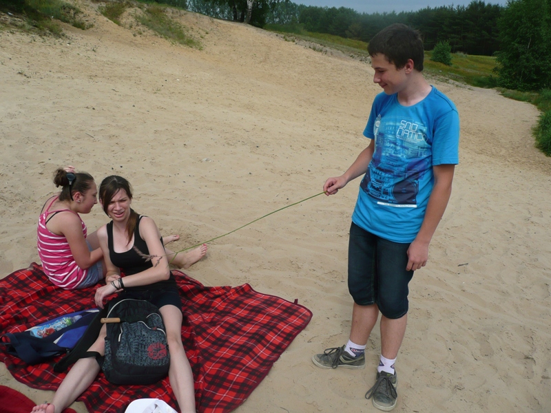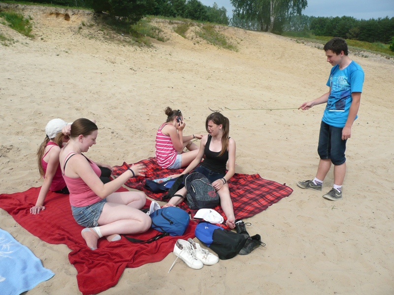 Po leśnej edukacji udaliśmy się na plażę nad Szałe. Tu, otoczeni zielenią, korzystaliśmy z uroków słonecznej pogody. Podczas wspólnego plażowania każdy z uczestników mógł posilić się … tym, co sam przywiózł.