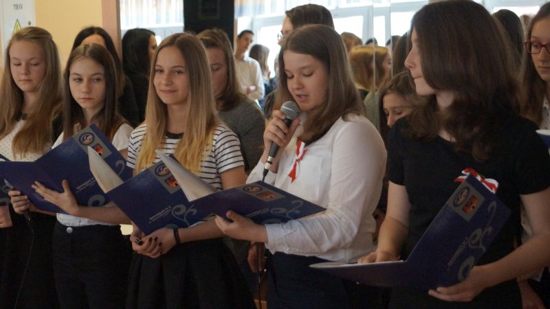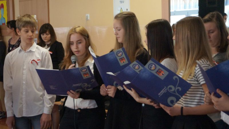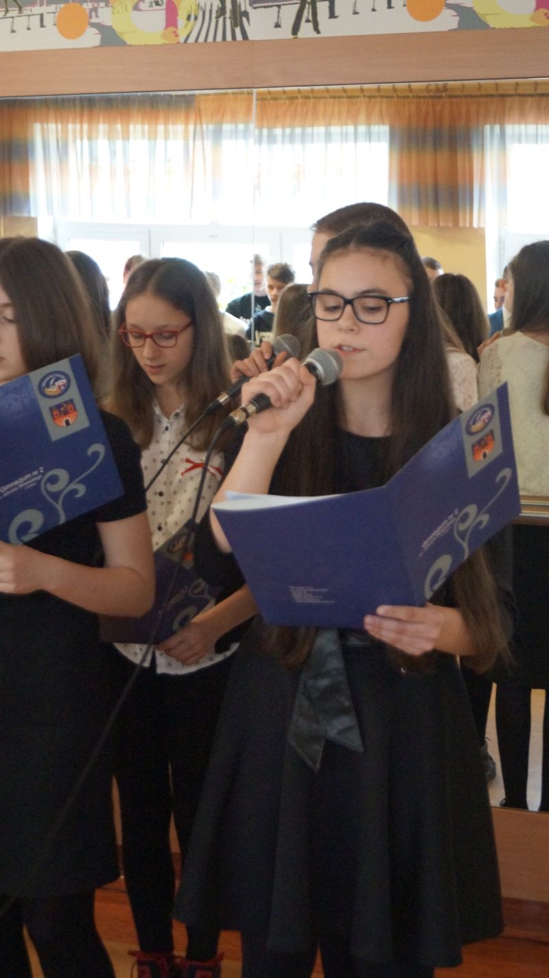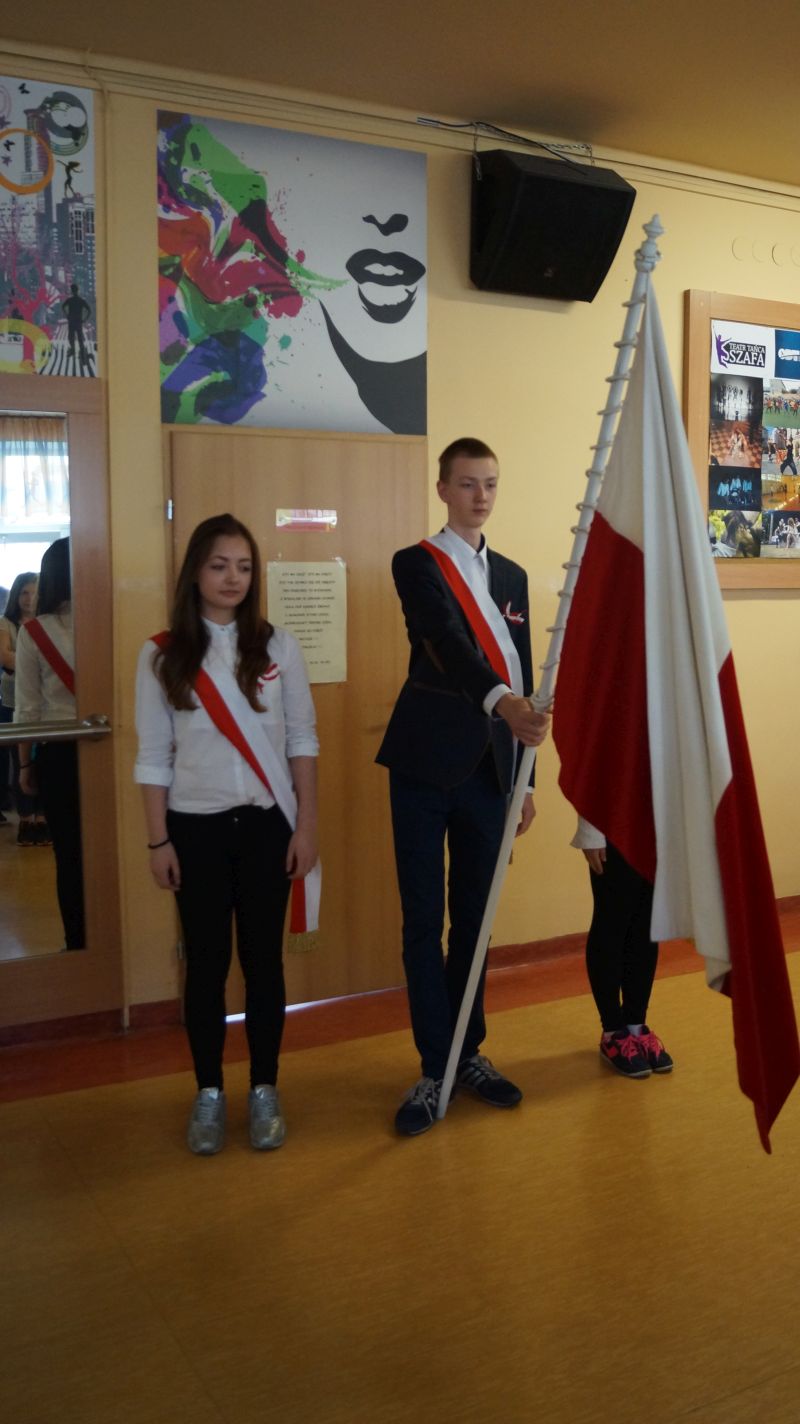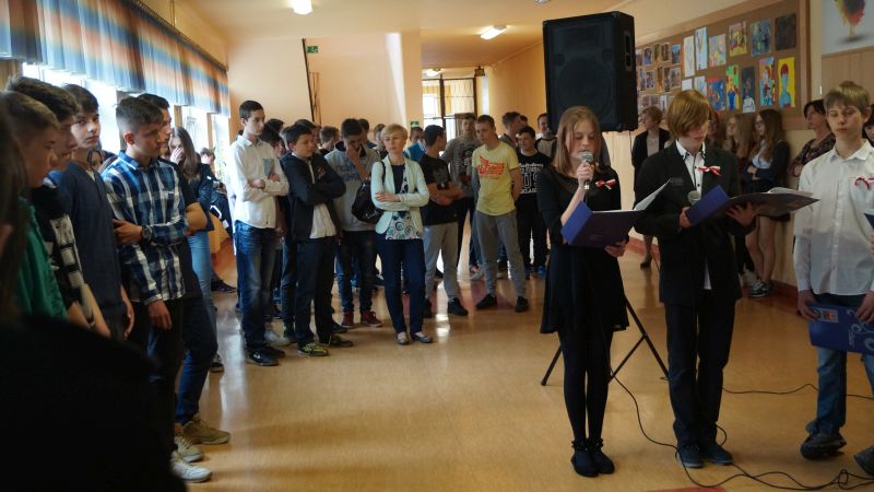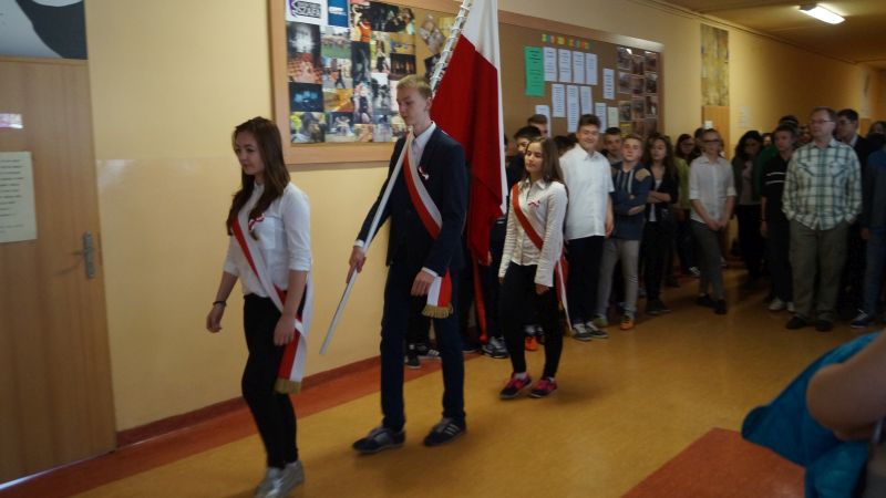 Dnia 4 maja 2016 r. odbył się w naszej szkole uroczysty apel z okazji świąt majowych. Uczniowie klasy 1d , 2b oraz 2d przypomnieli pochodzenie i znaczenie Święta Pracy , Konstytucji 3 maja , Dnia Flagi Rzeczypospolitej Polskiej oraz 12. rocznicę przystąpienia Polski do Unii Europejskiej, a także 71. rocznicę zakończenia II wojny światowej w Europie.