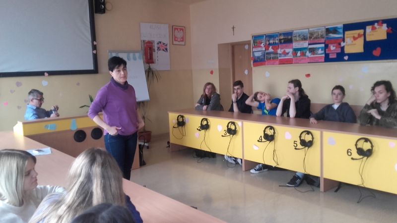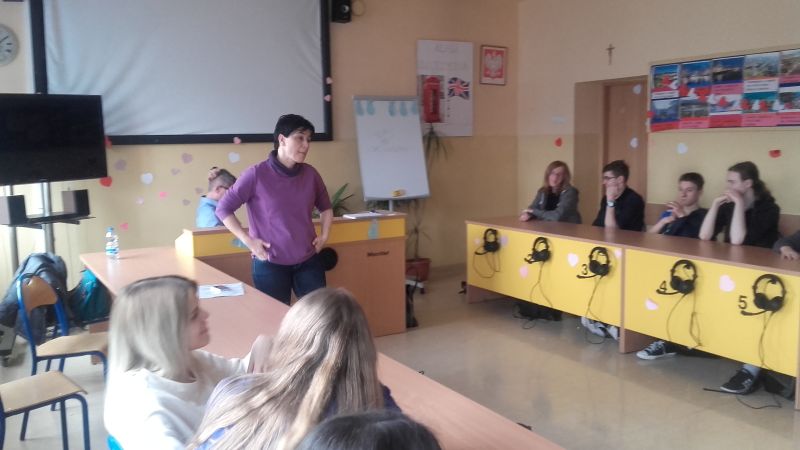 Koordynatorzy Fundacji Chops, którzy gościli 20 lutego br. w naszej szkole, przekonywali uczniów do używania ,,broni’’, którą mamy w sobie, czyli dobra. Zaznaczali jednocześnie, by nie bać się stawiać czoła złu, które jest bardziej krzyczące i może dlatego bardziej rzucające się w oczy, ale na pewno nie silniejsze. Młodzi ludzie, i nie tylko, mają tendencję do oszukiwania siebie i wypierania możliwych, negatywnych skutków swoich własnych, niewłaściwych wyborów życiowych. Np. mimo wiedzy, że palenie szkodzi zdrowiu, są przekonani, iż ten nałóg ich nie dotknie. To tak jakby brali monetę i chcieli zatrzymać z niej tylko jedną stronę ( awers), zapominając całkowicie, że ma ona również rewers, który jest z nim nierozerwalnie związany. Pani Aleksandra Gralińska i Roman Żarnecki na przykładach z własnego życia i historii innych ludzi starali się zachęcić naszych gimnazjalistów, by nie byli obojętni na to, co się dzieje wokół nich, by zarażali dobrem innych i szerzyli ideę wolontariatu. Ich marzeniem, jak mówią, jest,a by we wszystkie „ciemne” miejsca naszego miasta dotarło światło. Światło jest silniejsze niż ciemność! Wolontariusze fundacji organizują zbiórki żywności i odzieży, rozdają sprzęt AGD, meble, przeprowadzają akcje typu Wymiana ciepła, wygłaszają prelekcje w szkołach , ale przede wszystkim służą dobrym słowem, poradą, interesują się osobami, którym pomagają. Zauważyli, iż pomaganie innym ma dwie strony. Wyciągając rękę do tych, którym się nie powiodło i często znaleźli się na dnie, jednocześnie pomagający zmieniają też własne życie. ..