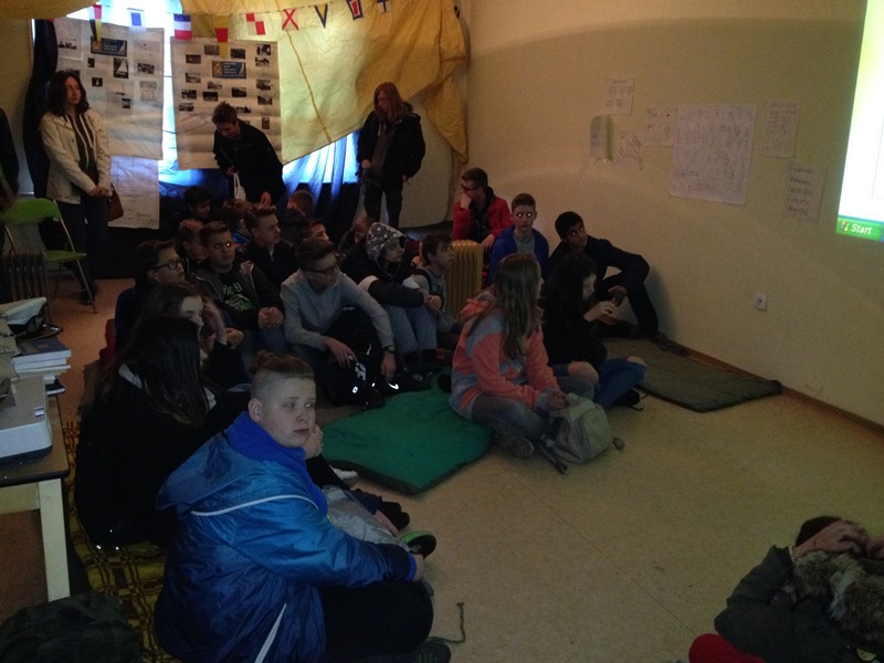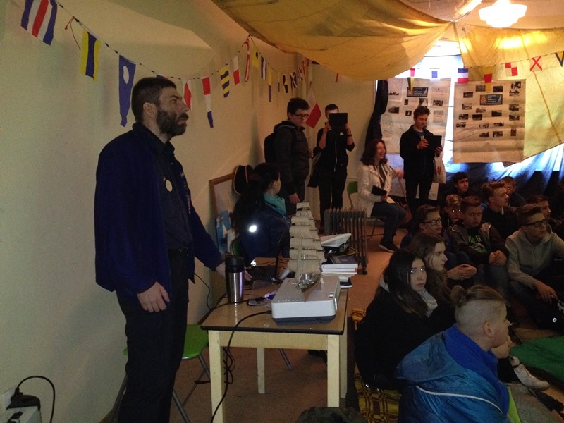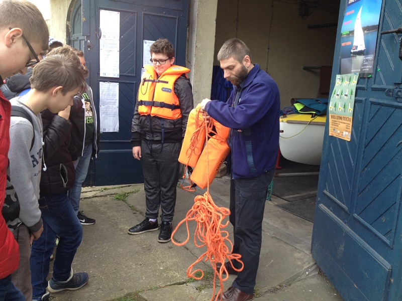 Rajd rozpoczął się od warsztatów marynistycznych. Czekając na nie, część z nas zdecydowała się pobiegać, a nawet potańczyć na pobliskim placu zabaw. Gdy przyszła nasza kolej, zaproszono nas do starego budynku Jacht Klubu „ Szturwał”. Właśnie tam pan Robert Papuziński – Komandor HKŻ „Odkrywca” opowiedział nam o historii zarówno wodniactwa na Ziemi Kaliskiej, jak i o głównym bohaterze rajdu. Na koniec pan Komandor pokazał nam główny hangar i zachęcił do udziału w najbliższych regatach na rzece Prośnie.