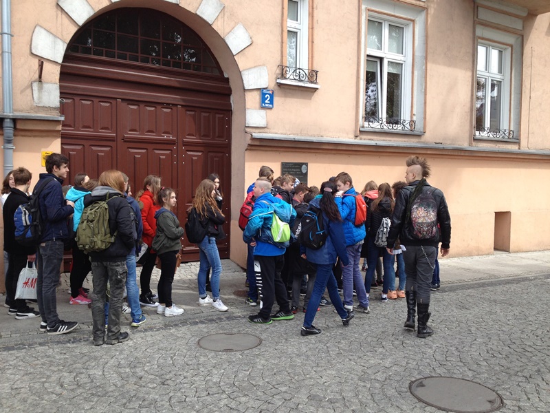 Po warsztatach przewodnicy, czyli uczniowie z Liceum Plastycznego zaprowadzili nas pod kaplicę ewangelicką na Wale Staromiejskim. Kazali nam zwrócić szczególną uwagę na wygląd zewnętrzny tego budynku. Nie różnił się zbytnio od otaczających go domków jednorodzinnych.