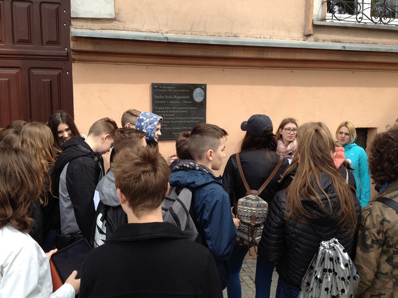 Spod kościoła garnizonowego przemieściliśmy się na ulicę Niecałą, na której urodził się Stefan Szolc–Rogozinski. Dowiedzieliśmy się, że ten podróżnik i patriota, wywodzący się z Kalisza, badał Afrykę, zwłaszcza Kamerun.