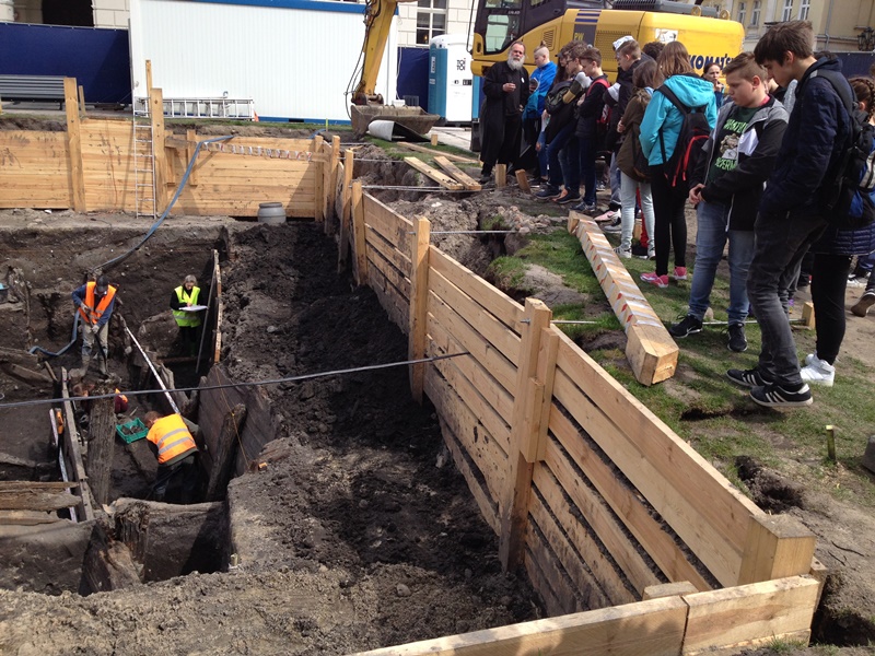 Ostatnim punktem na trasie rajdu były wykopaliska prowadzone na Głównym Rynku. Pan archeolog powiedział nam, że udało im się znaleźć pozostałości XIII – wiecznego Kalisza i że to jeszcze nie jest koniec poszukiwań.