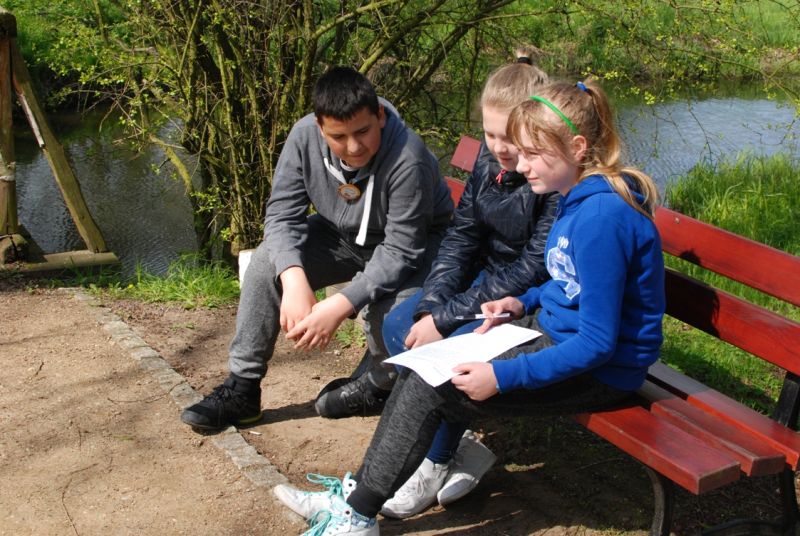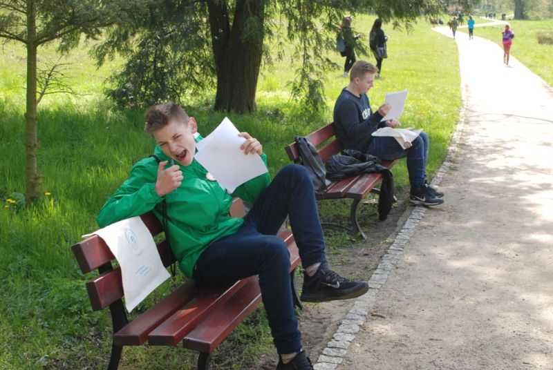Gimnazjaliści z 3b przygotowali rajd ekologiczny ,,Pod drzewami” dla uczniów szkół podstawowych. Zadaniem zespołów było dotarcie do punktów rozmieszczonych na terenie parku w Gołuchowie, znajdujących się w okolicy szczególnie cennych i pięknych drzew oraz udzielenie odpowiedzi lub wykonanie zadań. Najlepiej wypadli uczniowie ze Szkoły Podstawowej w Chełmcach- I miejsce. II miejsce wywalczyli uczniowie Szkoły Podstawowej nr 9 w Kaliszu, a III miejsce zdobyła drużyna Szkoły Podstawowej nr 11 w Kaliszu. W podobnym rajdzie w kategorii gimnazjów uczestniczyli uczniowie klasy 2d. Zespół w składzie: Maja Błaszczyk, Marika Bigosińska i Michał Kowalski zajął III miejsce.